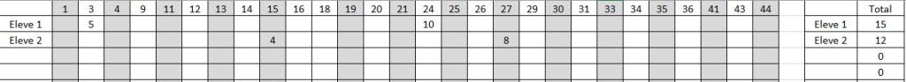 Chaque élève marque jusqu’à 10 points par fiche. Je rentre les scores sur un fichier Excel. Ainsi, ils peuvent voir où ils en sont dans leur lecture et leurs points (les nombres correspondent à un numéro mis sur chaque conte).