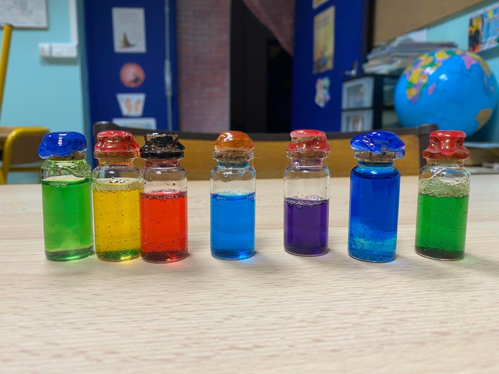 Il y a dans chaque petit tiroir une petite question. Chaque jour un élève est tiré au sort. S’il répond juste, il gagne une potion de son choix.
