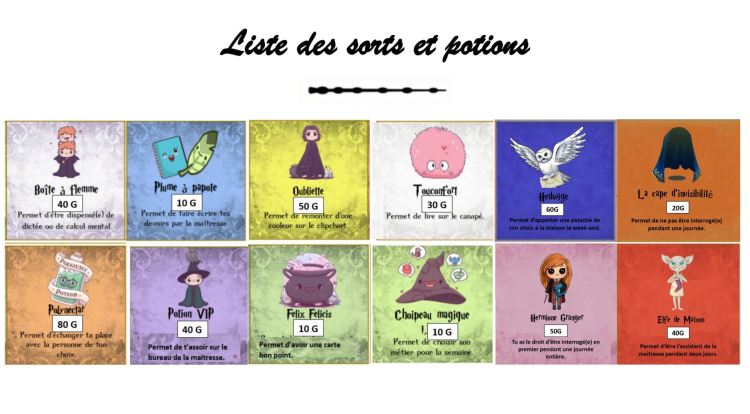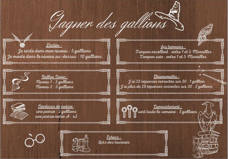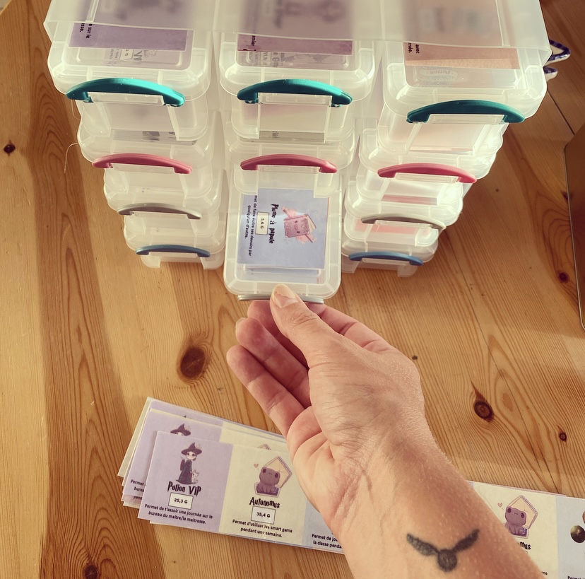Chaque élève gagne tout au long de la semaine des gallions qu’ils rangent dans des petites boites à bons points.