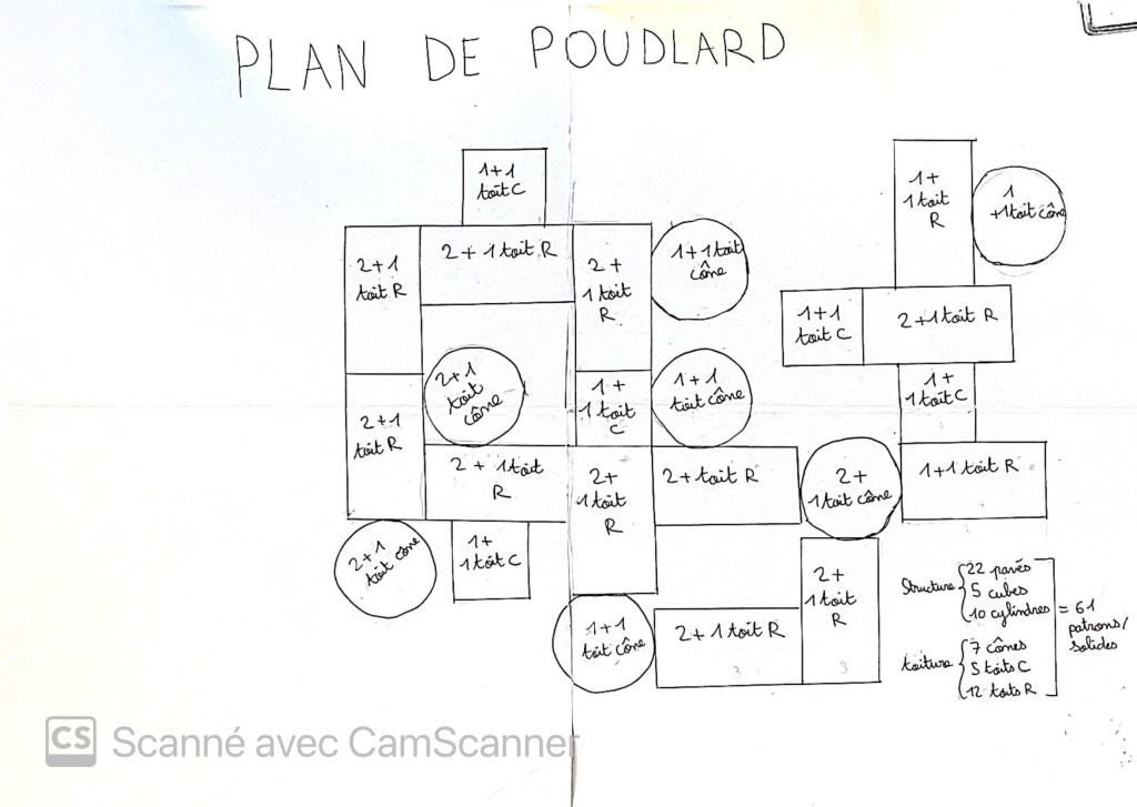 pour le collage de chaque solide, nous avons suivi le plan de Poudlard que j’ai créé ci-joint :