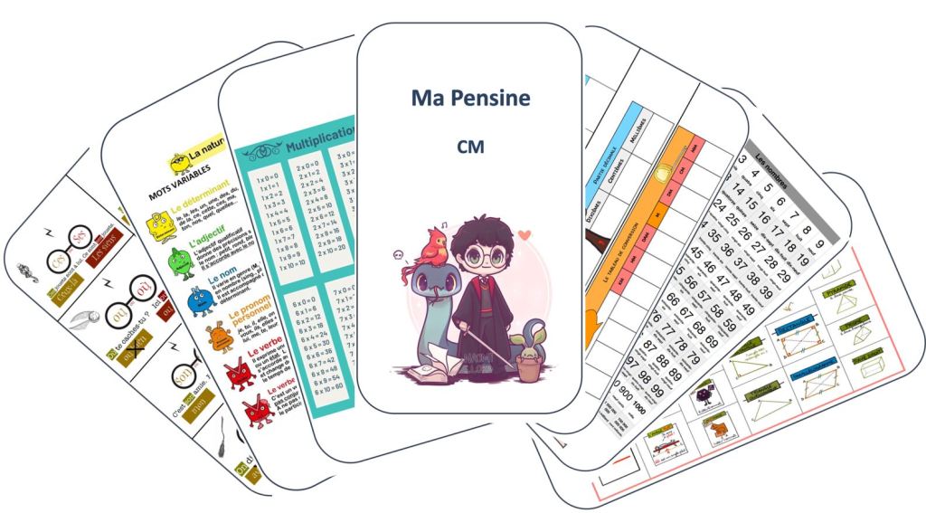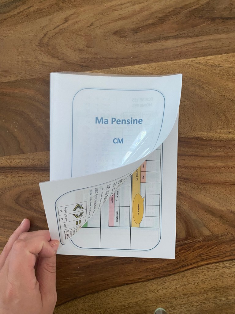 Pour chaque élève, j’imprime en petit livret une « pensine », qui regroupe quelques notions vues fréquemment en classe. Ils ont le droit de la sortir quand ils le souhaitent. J’imprime en livret A5, et je rajoute par dessus une couverture de reliure transparente pour pouvoir la protéger.